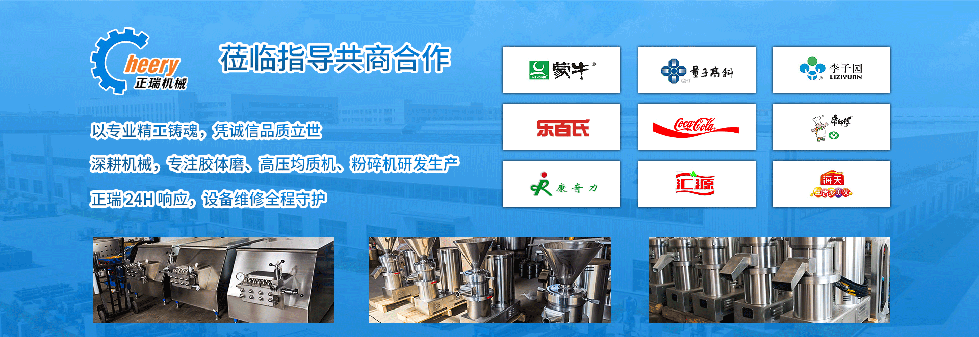 主要產品:膠體磨系列、高壓均質機系列、粉碎機系列、超微磨機系列、食品飲料成套設備